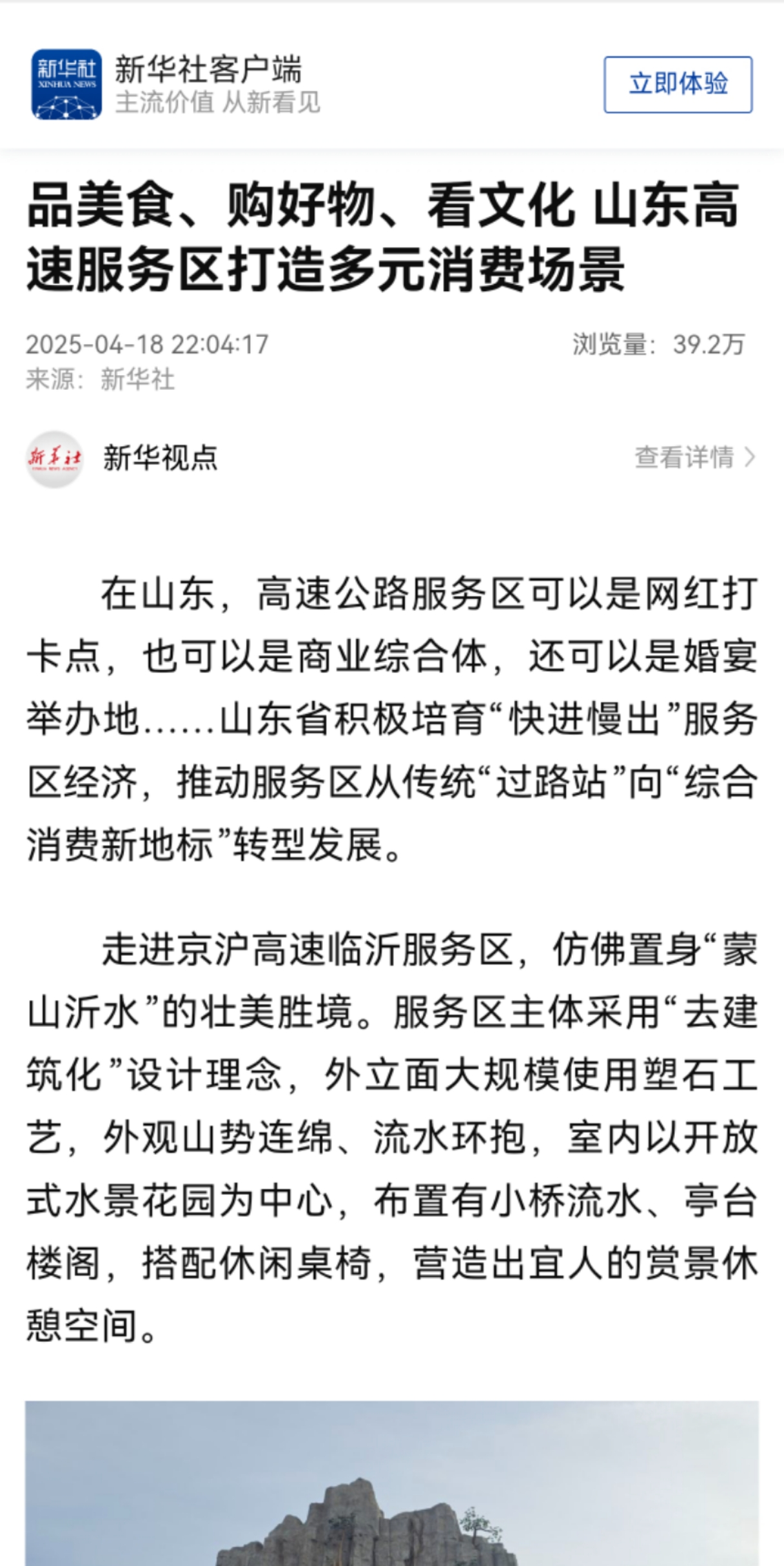 在山東,高速公路服務區可以是網紅打卡點,也可以是商業綜合體,還可以是婚宴舉辦地……山東省積極培育“快進慢出”服務區經濟,推動服務區從傳統“過路站”向“綜合消費新地標”轉型發展。