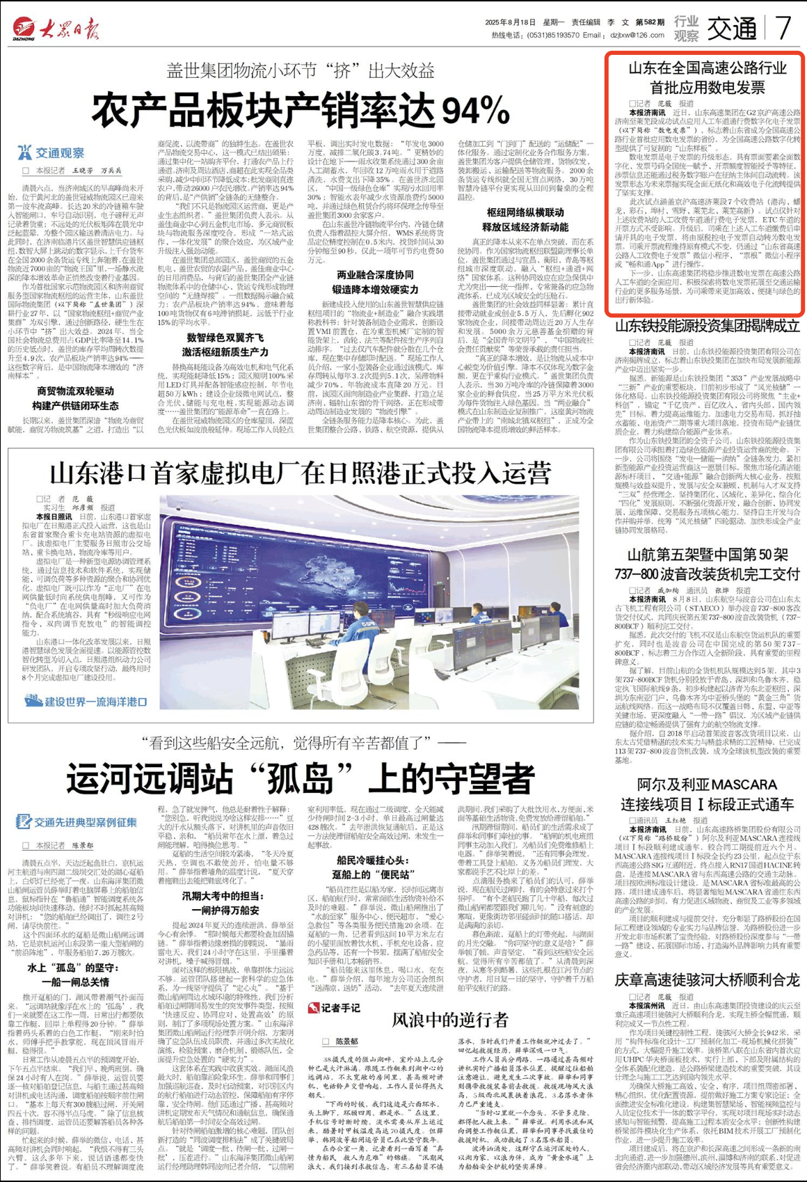 【大眾日?qǐng)?bào)】山東在全國(guó)高速公路行業(yè)首批應(yīng)用數(shù)電發(fā)票